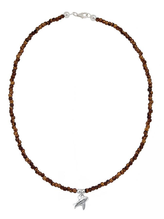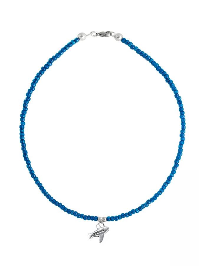 925 Silber Kette Collier Choker mit bernsteinfarbigen Rocailles Glasperlen und Flugzeug Anhänger