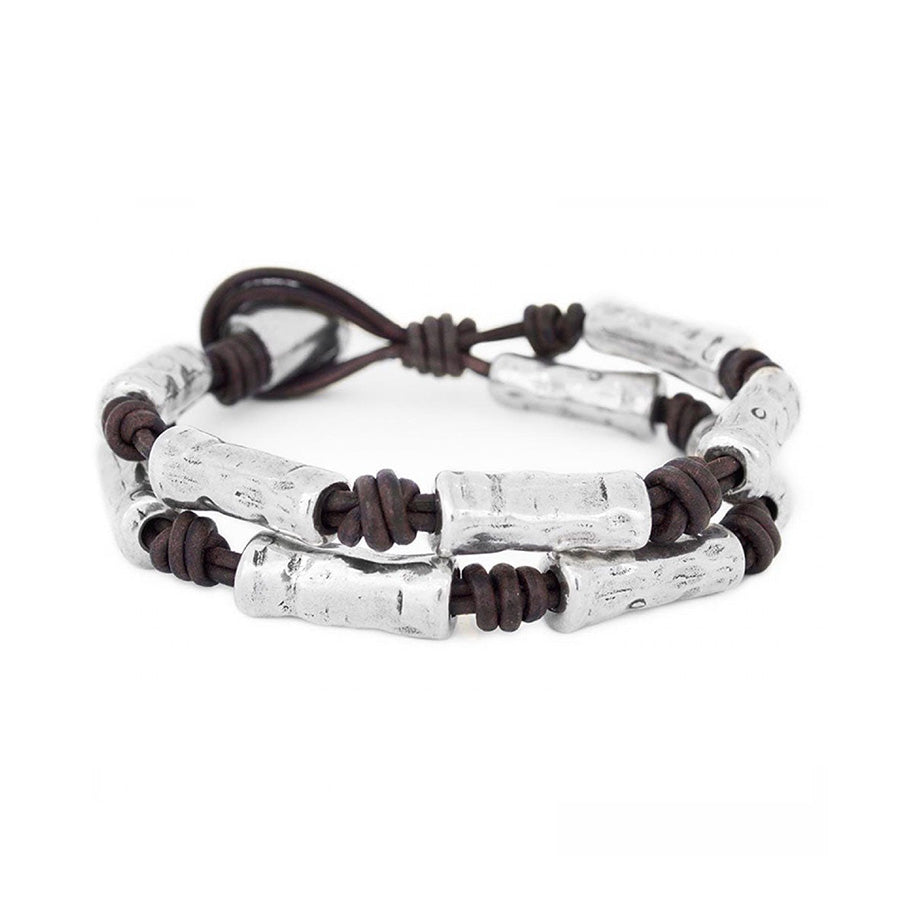 Lederarmband für Damen und Herren 2 reihig in Braun oder Schwarz A998