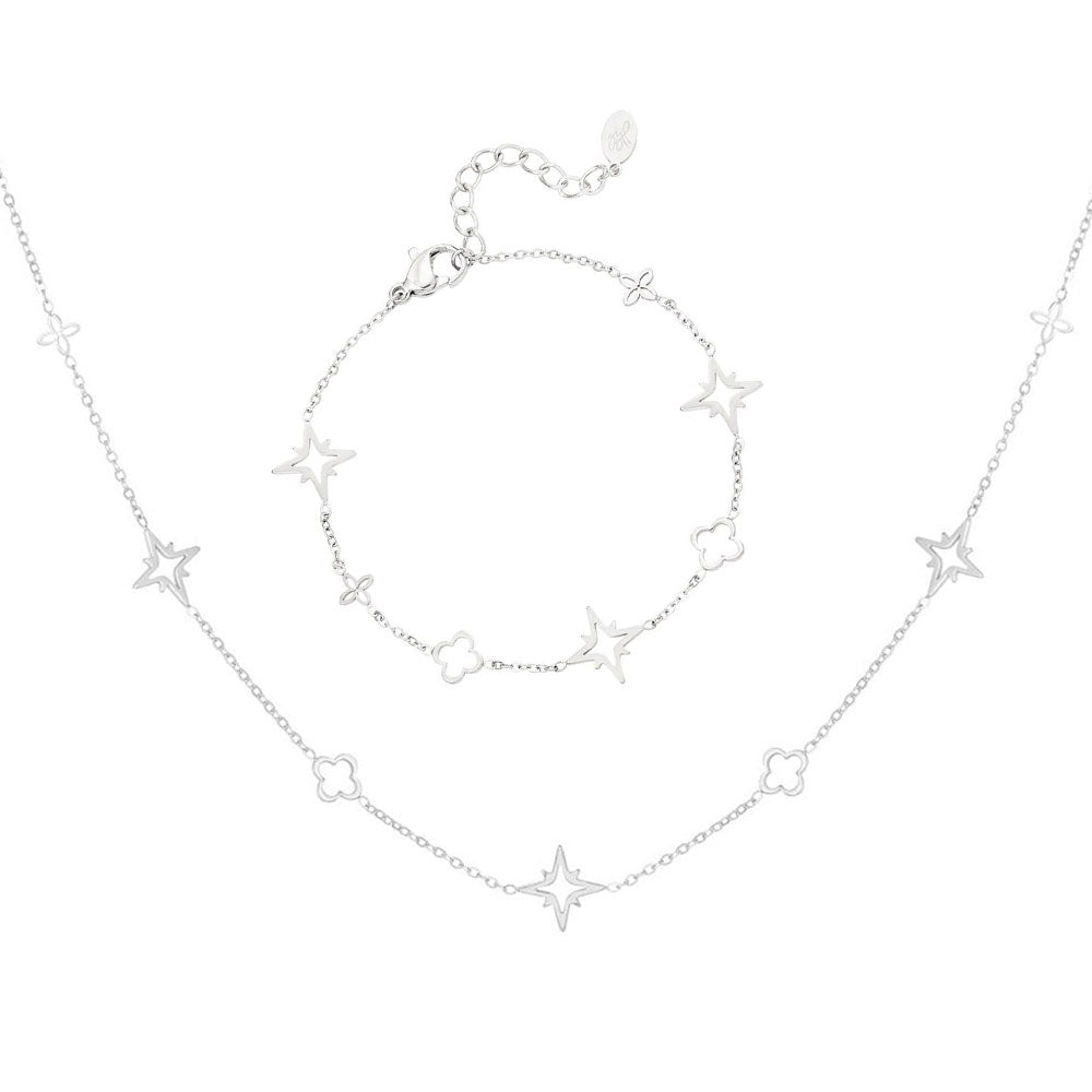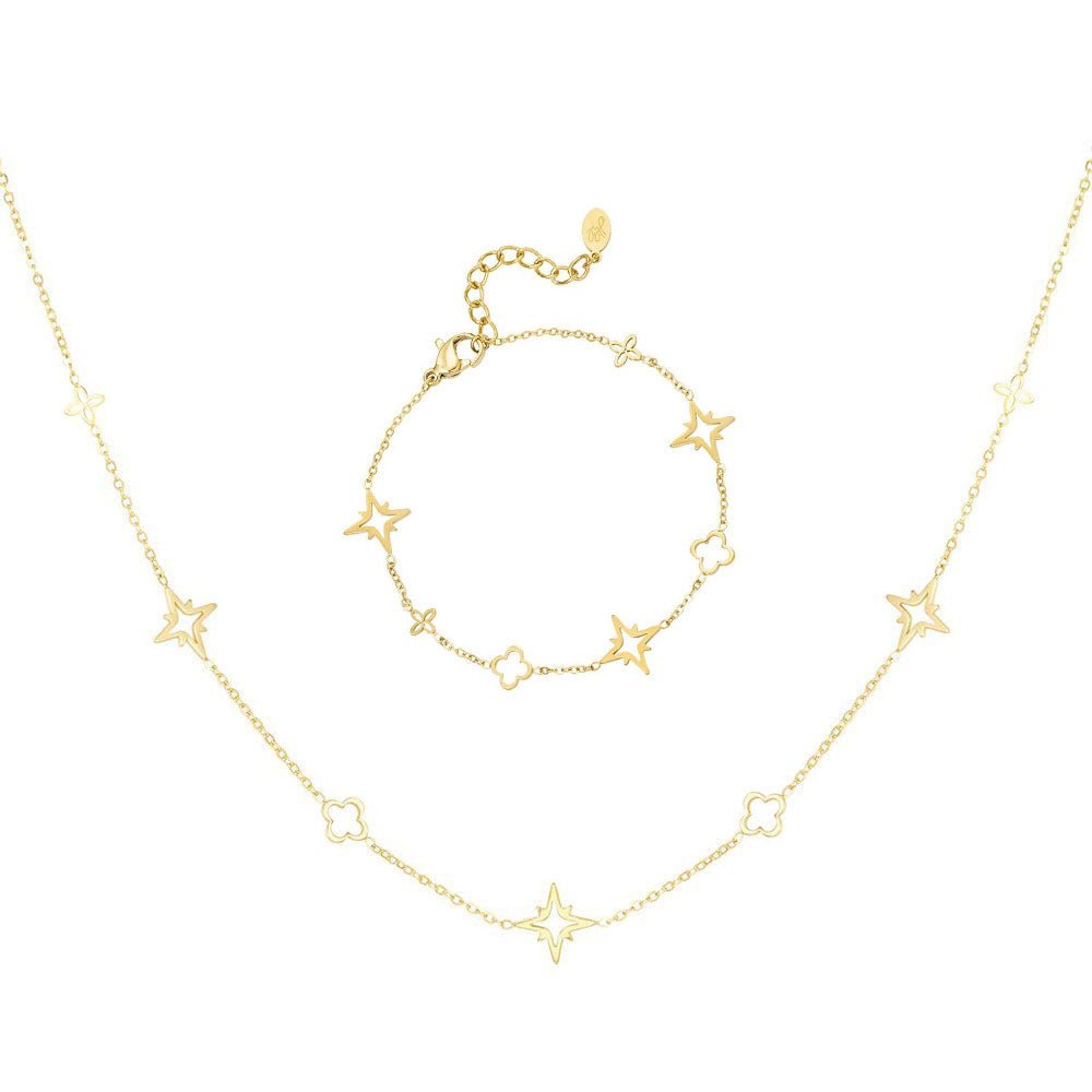 Sterne & Glück Halskette mit Glücksklee und Sternen und das dazu passende Armband