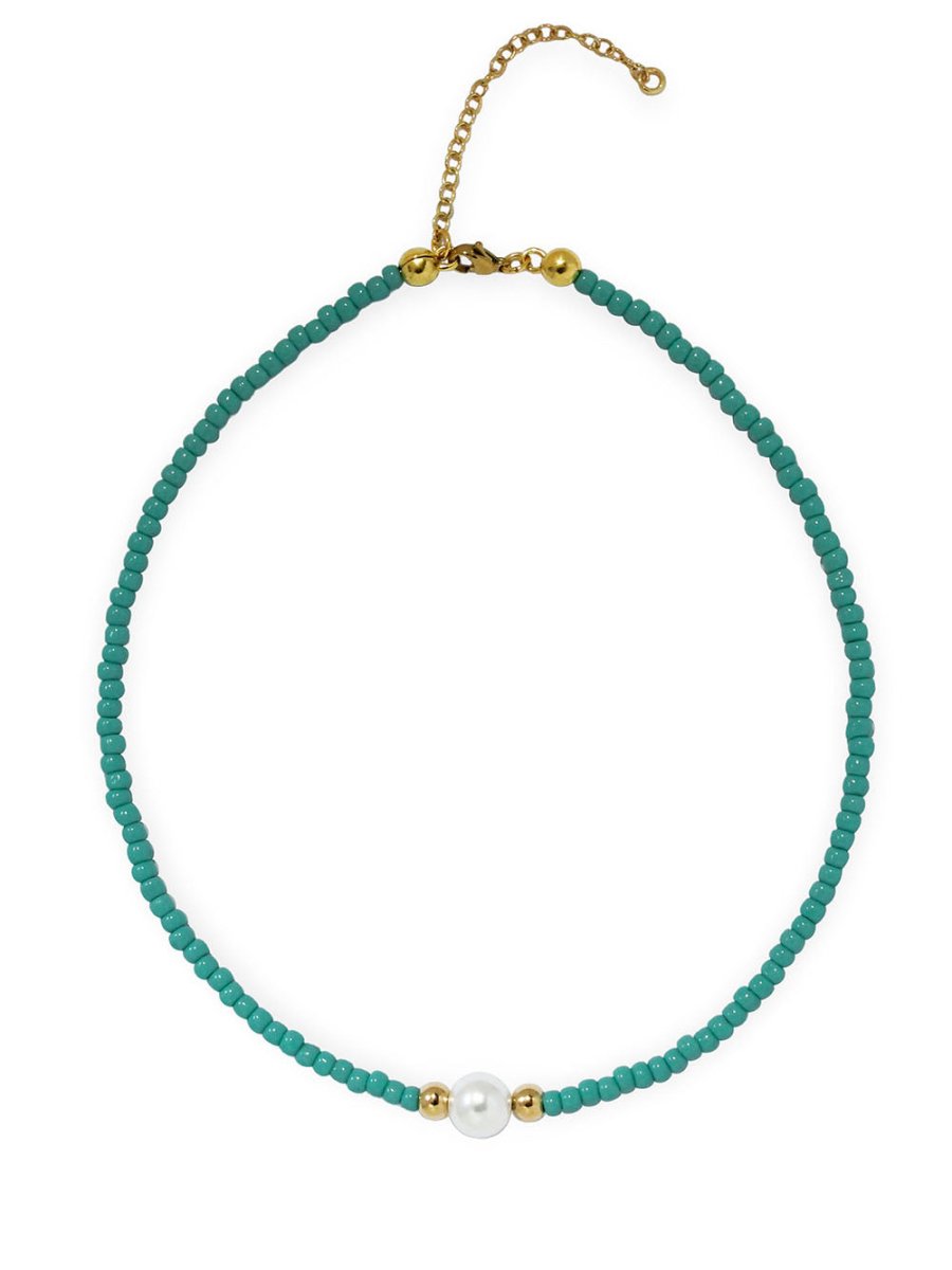 Kette Bella - Kurze Kette mit türkisfarbenen Glasperlen und cremefarbiger Wachsperle