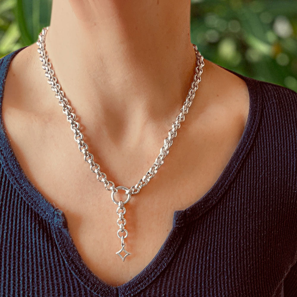 This silver curb chain necklace features a stylish star pendant, making it a perfect everyday piece or a thoughtful gift. The high-quality chain necklace adds a modern touch, while the finely star pendant brings a subtle sparkle to your look.
