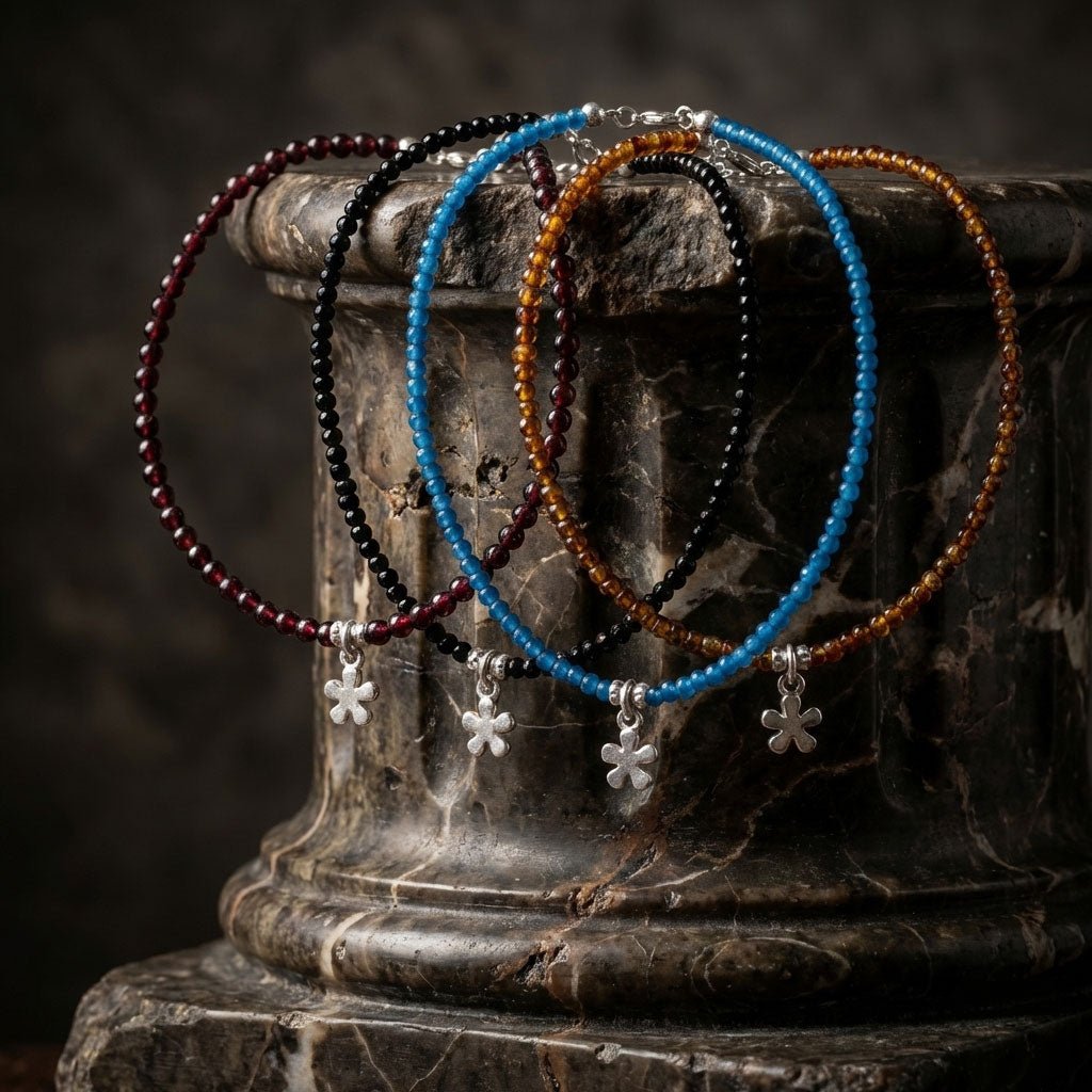 925 silver chain necklace with rocailles glass beads and flower pendant